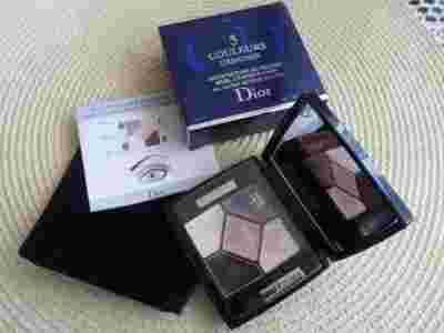 Opakowanie cieni to elegancka, granatowa kasetka z dużym lusterkiem charakterystyczna dla marki Dior schowana w welurowej saszetce i kartonowym pudełeczku.