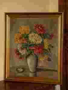 Chryzantemy w wazonie - piękny stary olej !!!!!!