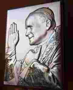 Prezentowana na aukcji płaskorzeźba to odlew świętej figury polany srebrem próby 0.925,