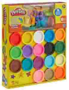 PLAY - DOH A4897 WSPANIAŁA TĘCZA AŻ 18 TUBEK Play-Doh to ciastolina - miękka masa plastyczna, dzieki której wszystkie dzieci moga wyczarować co tylko zechcą. Zabawa z Play-Doh pobudza wyobraźnie, rozwija sprawność manualną, pomaga w nauce rozróżniania kolorów. Zestaw zawiera 18 różnych kolorów m.in. jaskrawo różowy, pomarańczowy, zielony, turkusowy i wiele innych. Posiada przyjemny zapach. PLAY-DOH to ciastolina - miękka masa plastyczna, do modelowania. Rozwija zdolności manualne dziecka, pomaga w rozróżnianiu kolorów oraz pobudza wyobraźnię. Ciastolinę należy przechowywać w szczelnie zamkniętych tubach. Jeśli masa stanie się zbyt sucha wystarczy owinąć ją w wilgotny materiał, po godzinie powinna odzyskać dawną konsystencję ( o ile nie pozostała w tym stanie zbyt długo). ZESTAWU ZAWIERA - 18 tub ciastoliny 1 kg - 16 kolorowych foremek Towar nowy powystawowy (brak zewnętrznej folii ochronnej).
