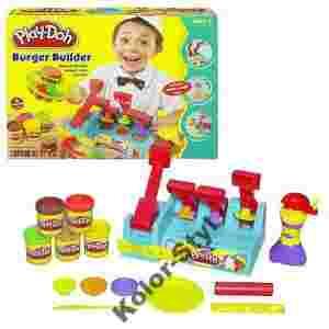Fantastyczna zabawa w kucharza z ciastoliną Play-Doh. Duży zestaw do robienia ciastolinowych hamburgerów. Zestaw zawiera: