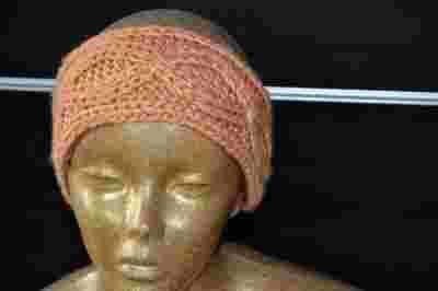 CIEPŁA OPASKA NA USZY ZIMA PLECIONA BRZOSKWINIOWA