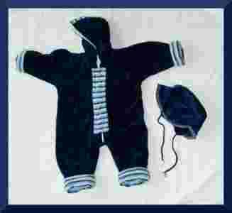 kolor: granatowy z wykonczeniami w paski , opis: welurek mieciutki i przyjemny w dotyku, z wierzchu welur, w środku ocieplenie, z wewnątrz milutka bawełna ; rękawy i nogawki mogą być wywijane- kombinezon "rośnie" z dzieckiem; eleganki, pieknie uszyty z dbałościa o szczegóły; bardzo wygodny bo nie krępuje ruchów dziecka- jest miekki i wszedzie dobrze zgina i układa wymiary: dł. od ramienia do konca nogawki 66cm (przy zawinietej nogawce 62-63cm),szerokosc pod paszkami 41cm; rozmiar z metki to 92 ale moim zdaniem jest raczej mniejszy