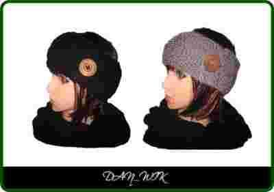 Cieplutka wełniana opaska na głowę z guzikiem 3 ko