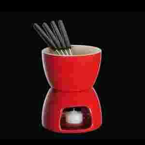 Zestaw do fondue czekoladowego firmy Cilio. Wykonany z wysokiej jakości porcelany, barwiony na kolor pomarańczowy. W skład zestawu wchodzą również 4 widelczyki. Pojemność miseczki ok 0,35l. Doskonały pomysł na ciekawie podany deser lub jako prezent.