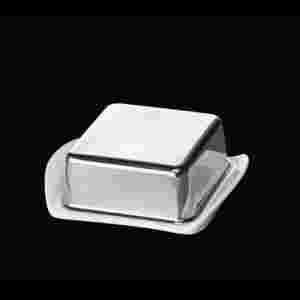 Metalowa maselniczka marki Cilio. Wykonana w całości z polerowanej stali nierdzewnej.