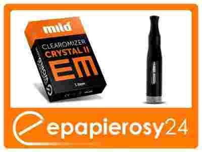 Bardzo popularny i sprawdzony system generowania dymu Clearomizer Crystal 2. W pełni rozbieralny. Czarna tulejka z tworzywa sztucznego wyposażona jest w specjalne podłużne okienko, pozwalające obserwować poziom płynu nikotynowego uzupełnianego „od góry”. Wymienny zespół grzewczy umiejscowiony w górnej części parownika. Precyzja wykonania i estetyczny wygląd to dodatkowe atuty Clearomizera Crystal 2 EM. Do napełniania urządzenia polecamy zakupienie liquidu Mild, Volish, LiQueen lub Provog.