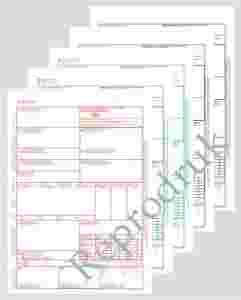 5-kartkowy, samokopiujący EGZ. 1 - dla nadawcy EGZ. 2 - dla odbiorcy EGZ. 3 - dla przewoźnika EGZ. 4 i 5 - do dowolnego wykorzystania format A4, bloki po 10 formularzy 5-kartkowych, zaklejone po krótkim boku, okładka kartonowa z nadrukiem - może służyć jako podkładka podczas wypełniania formularza, druk na wysokiej jakości białym papierze samokopiującym.