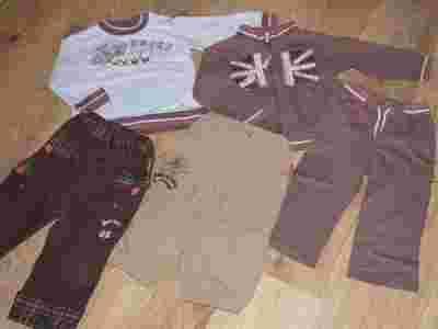 Stan: spodnie beżowe i bluza błękitna – idealny, dres i spodenki sztruksowe bardzo dobry+.