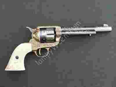 Replika jest wykonana ze ZnAlu - stopu cynku z aluminium, wykończona w wersji przepalanego mosiądzu w stylu meksykańskim, bogato zdobiona. Obicie rękojeści wykonano z imitacji kości słoniowej. Realizmu dodaje możliwość przeładowania i oddania tzw „suchego strzału”. Bęben jest obrotowy automatycznie po pełnym odciągnięciu kurka, lub ręcznie poprzez odciągnięcie kurka o połowę. Miejsce na 6 sztuk amunicji. W replice tylna ściana oporowa została z jednej strony zaopatrzona w otwieraną do dołu pokrywę bębna (widoczna na zdjęciach). Pod lufą zamontowany jest działający mechanizm rozładowujący.