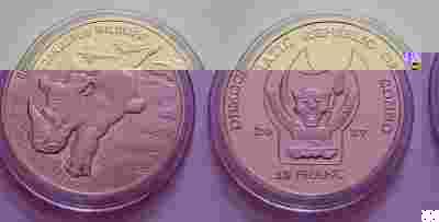 CONGO 2007 10 FRANC NOSOROŻEC ZAGROŻONE GATUNK UNC