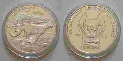 CONGO 2007r 10 FRANC GEPARD ZAGROŻONE GATUNKI UNC