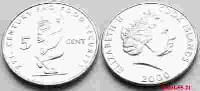 COOK ISLANDS 5 CENTS 2000 BÓG TANGAROA