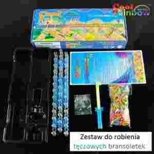 Zestaw Kreatywny do robienia tęczowych bransoletek z kolorowych gumeczek.
