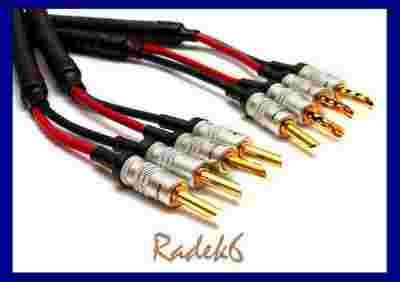 Na tej aukcji oferuję profesjonalne przewody głośnikowe niemieckiej firmy Cordial z oprawą w pozłacane 24karatowym złotem banany firmy Prolink. Najbardziej szanowane studia nagraniowe stosują przewody tej firmy w swoich systemach audio. (np. w TVP, Polskim Radiu, BBC).