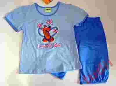 Bawełniana piżamka z krótkim rękawkiem i spodniami 1/2. Nogawki dołem ściągane mankietem. Wygodny prosty krój z nadrukiem z przodu.