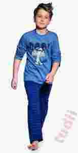 Przedmiotem aukcji jest piżamka chłopięca z firmy Cornette. Piękne kolory i świetna jakość zapewni twojemu dziecku przyjemny, komfortowy sen. Bluzeczka z długim rękawem i długie spodnie na gumce w pasie. Bluzeczka z nadrukiem z przodu, spodnie w paseczki. Na piżamce aplikacja świecąca w ciemności.