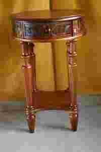 Rzeźbiony stolik, pod blatem posiada małą szufladkę co czyni go jeszcze funkcjonalniejszym. Idealnie nadaje się np. pod telefon do przedpokoju.