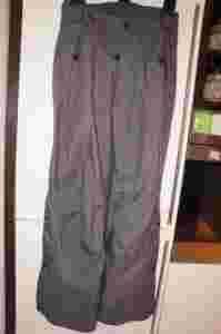 Spodnie na szelkach (regulowanych, rzepy), w pasie stopery, nogawki po bokach zaopatrzone w zatrzaski i suwak tak. Wewnątrz nogawek mankiety przeciwśnieżne, przeciwbłotne. Na przodzie dwie kieszenie zapinane na suwak