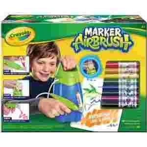 Jak to działa? Crayola od lat wprowadza dzieci w świat kreatywnego malowania. Tym razem pomoże w tym prosta pompka, tworzy ciśnienie i rozpyla tusz markera. Młodzi artyści mogą eksperymentować i tworzyć nieskończone ilości cienkich i grubych wzorów. Twoje dziecko będzie zachwycone możliwościami, jakie daje Marker Airbrush!Zestaw zawiera 4 szablony z oryginalnymi wzorami, które pomogą dziecku podczas malowania. Różnorodna tematyka szablonów od podwodnego świata aż po podróże międzyplanetarne inspiruje do twórczego działania.Dziecięca aktywność wystarczy by wprawić w ruch Airbrusha!Prosty projekt pompki, sprawia że Marker Airbrush nie wymaga użycia baterii! Wystarczy wetknąć marker w końcówkę urządzenia, napompować Airbrusha, nacisnąć spust i… zaczynamy kolorowanie!Urządzenie łatwe do czyszczenia po skończonej zabawie trzeba jedynie oczyścić końcówkę Airbrusha, płucząc ją wodą. Tusz markera nie przedostanie się do innych elementów zabawki, więc czyszczenie jest wyjątkowo proste!Użyj Markerów do Tkanin! Wykonaj piękne wzory na koszulce lub innej części ubioru za pomocą Airbrusha i Markerów do Tkanin od Crayoli. Wykorzystaj jasne kolory, rozprowadź je na materiale, a następnie wysusz. To naprawdę łatwe, a przynosi super efekty!Zestawu Marker Airbrush od Crayoli możesz używać z większością flamastrów Crayoli.