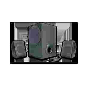 to zestaw głośnikowy w standardzie 2.1 doskonale dostosowany do współpracy z komputerami PC i urządzeniami przenośnymi wyposażonymi w wyjścia stereofoniczne. Zestaw zapewnia wierny, szczegółowy dźwięk, potęgując wrażenia podczas odtwarzania muzyki i materiałów audiowizualnych. Aby ułatwić obsługę zestawu, wyposażono go w pilota przewodowego z regulatorem głośności.