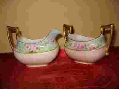 Wymiary: Mlecznik - wysokość 9 cm, rozpiętość 12 cm, cukiernica - wysokość 9 cm, rozpiętość 12 cm.