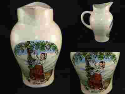 dzbanuszek ceramiczny o cudownym kształcie.Na czole zdobiony motywem dekoracyjnym w postaci kobiety zbierającej winogron.Idealny do wystroju wiejskiej kuchni lub kącika winnego.Dzbanuszek prezentuje się bardzo ładnie.Polecam.