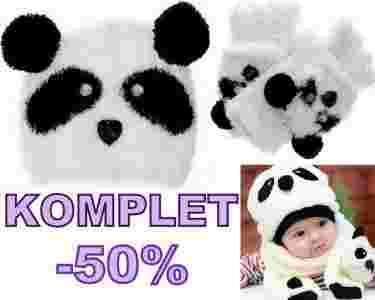 CUDOWNY KOMPLET CZAPKA RĘKAWICZKI PANDA FOTOGRAF %