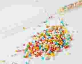 Małe kolorowe cukierki zamknięte w palistkowych słomkach