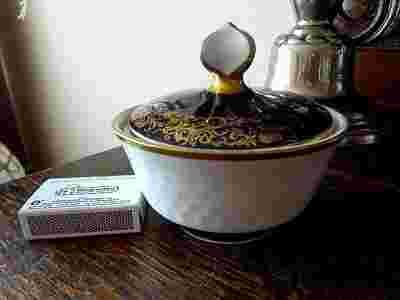 CUKIERNICA, BIAŁA WYSOKOGATUNKOWA PORCELANA ZDOBIONA ZŁOCENIEM  I KOBALTEM,