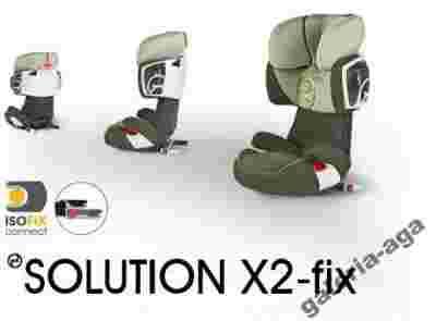 Wbudowane zaczepy fotelika Solution X2-fix można łatwo wpiąć w uchwyty ISOFIX w samochodzie. Dziecko zabezpieczane jest 3-punktowym pasem samochodowym. Oparcie fotelika można odchylić jedną ręką. Zaczepy fotelika łatwo się składa, dzięki czemu fotelik ten może być użytkowany w samochodach niewyposażonych w system ISOFIX.