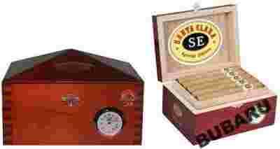 Zapakowane są w piękne pudełko wyłożone dzrzewem cedrowym,które wyposażone jest w higrometr,mierzący wilgotność we wnętrzu.