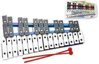 Cymbałki, 27-tonowe dzwonki chromatyczne. Duży instrument, piekne brzmienie.  Idealny produkt do stawiania pierwszych kroków w czarodziejskiej krainie muzyki. Bardzo dobra jakość produktu. Wymiary opakowania 39x24cm.