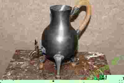 CYNA DUŻY DZBAN CYNOWY DODATKI W DREWNIE - LICYTUJ