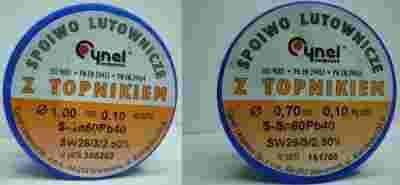 Do zaoferowania mamy cynę lutowniczą o grubości 0.7mm i 1,0mm na szpulkach 0,1kg firmy CYNEL z topnikiem.