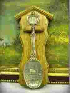 CYNOWA ŁYŻKA NA DĘBOWEJ DESCE .