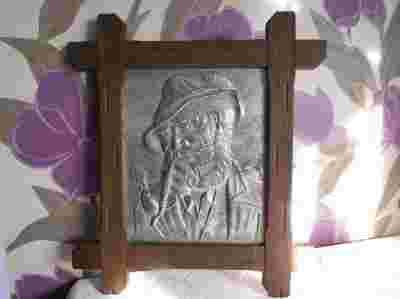 Cynowy obraz/płaskorzeźba w oprawie dębowej