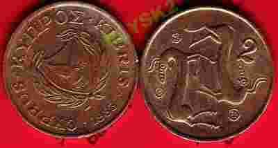 CYPR /KM-54.1/ 2 CENTS 1983 r.Stylizowane Kozy?