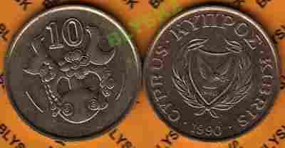 CYPR /KM-56.2/ 10 CENTS 1990 r. Ptaszki