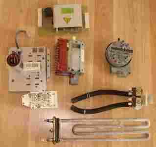 Okablowanie , termostat, zamek do drzwiczek , drzwiczki , fartuch , włączniki cewka , moduł elektroniczny , grzałka , elektrozawór , koło napędowe , pasek , zawias , szuflada , pokrętła , i wszelkiego rodzaju rurki gumowe i plastikowe.