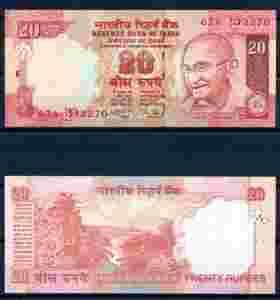 Cz.Słania, India, 20 Rupees, stan UNC.