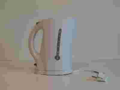 Czajnik w kolorze białym, o niewielkich wymiarach (24x25x12), a dużej pojemności (1.7l),