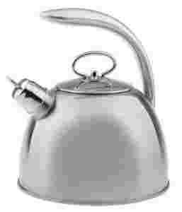 Czajnik z gwizdkiem „ Astri” jest masywny, gustownie satynowany. Pękata, dmuchana rączka ze stali uniesiona wysoko nad korpusem czajnika pięknie się prezentuje .