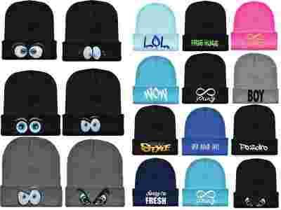 czapka krasnal beanie zimowa kolorowe napisy oczy
