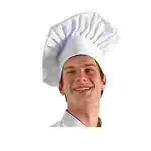 Czapka kucharska budyniówka. Uszyta jest z mieszanki poliestru i bawełny, co pozwala na zachowanie higieny podczas pracy.