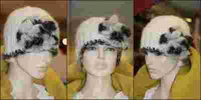 CZAPKA RETRO Z KWIATEM biala rekodzielo
