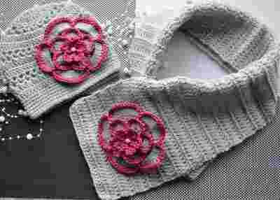 Czapka szalik KWIAT szary 3 - 6msc r. 68