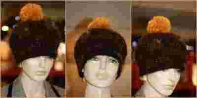 CZAPKA Z POMPONEM RĘKODZIEŁO BRĄZ I ZÓLTY