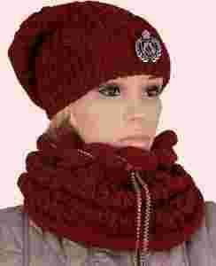 Czapka z szalikiem FP Fiona bordo SUPER KOMPLET