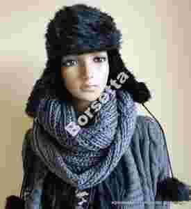 Czapka zimowa USZATKA z pomponami dla NIEJ czarna